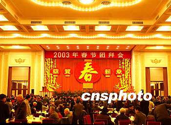 中新網(wǎng)北京1月31日電(記者 齊彬)中共中央、國務院今天上午在人民大會堂舉行二00三年春節(jié)團拜會,江澤民、胡錦濤、李鵬、朱镕基、李瑞環(huán)、李嵐清、吳邦國、溫家寶、賈慶林、曾慶紅、黃菊、吳官正、李長春、羅干等領(lǐng)導人同首都各界人士四千五百多人歡聚一堂,辭舊迎新,共慶中國人民的傳統(tǒng)節(jié)日。