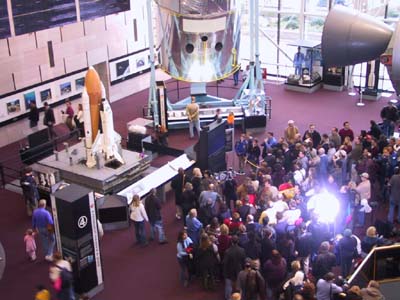 眾多美國(guó)人在國(guó)家宇航博物館觀看哥倫比亞失事專題報(bào)道