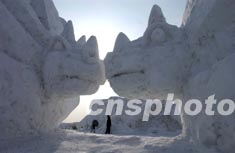 冰天雪地的長(zhǎng)春凈月潭為新春游覽設(shè)立雪雕恐龍世界,營(yíng)造北國(guó)侏羅紀(jì)傳奇。作者:賈國(guó)榮