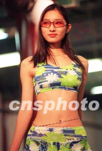 圖:身著泳裝的模特在北京廟會T型舞臺上