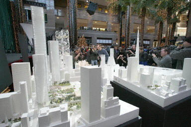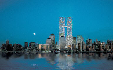 由兩名紐約設(shè)計(jì)師領(lǐng)銜的設(shè)計(jì)小組提出的方案被稱為“二十一世紀(jì)的艾菲爾鐵塔”,方案希望在世貿(mào)遺址上興建“世界文化中心”,建筑將高達(dá)一千六百六十五英尺。