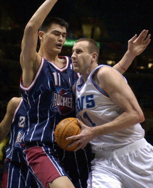 北京時(shí)間2月6日上午,NBA常規(guī)賽火箭客場(chǎng)102-105不敵騎士,姚明全場(chǎng)得14分5籃板,而對(duì)方的立陶宛中鋒伊爾高斯卡斯則得到20分7籃板略勝一籌。