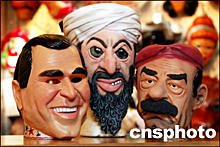 布什、拉登和薩達(dá)姆形象的面具熱銷(xiāo)