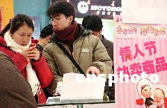 各大超市、商場(chǎng)、禮品店里,正忙著趕傳統(tǒng)春節(jié)“大集”尾聲的精明商家,也同樣沒有放棄對(duì)“情人節(jié)”這一絕好商機(jī)的競(jìng)逐。巧克力、情人卡、鉆石飾物、情侶服飾等各種洋溢著浪漫色彩的禮品琳瑯滿目,且紛紛亮出優(yōu)惠“旗號(hào)”來(lái)“誘惑”愛河中的男女。