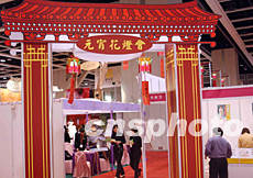 第三十屆情人節(jié)婚紗及結(jié)婚用品展,二月十四日在香港會展中心開幕,參展商為歡度元宵佳節(jié)在展會上搭起燈會牌坊。作者:錢興強(qiáng)