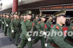 “兩會(huì)”安全保衛(wèi)清理整治社會(huì)治安秩序啟動(dòng)儀式,十六日在北京西客站舉行。儀式后,治保員、武警官兵紛紛走上街頭維護(hù)社會(huì)治安。作者:任海霞