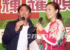 電視劇“九五至尊”兩位男女主角江華、張可頤2月18日在香港出席“加港星輝耀頤康”籌款晚會(huì)記者會(huì),江華、張可頤當(dāng)晚將合演黃梅調(diào)游龍戲鳳,為籌得更多善款傾力演出;I款晚會(huì)將于本月二十二日晚舉行。中新社傳真 鄧慶樂 攝