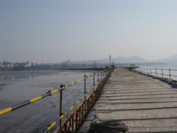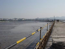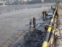 據(jù)中廣網(wǎng)報(bào)道,圍堰兩邊是截然不同的風(fēng)景:一邊是碧波蕩漾,游船點(diǎn)點(diǎn)的秀麗西湖;一邊是湖底黑色的淤泥。中間圍堰有兩米多寬,全部用沙袋壘成,兩邊用鋼質(zhì)構(gòu)件固定,十分牢固。兩側(cè)水位的落差有三四米。抽干的湖底呈橢圓型,有幾臺(tái)小型水泵仍在工作,抽出從地下滲出的湖水。