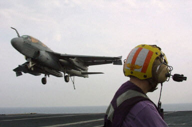 EA-6B“徘徊者”(Prowler)全天候電子作戰(zhàn)機(jī)通過其攜帶的反輻射及干擾導(dǎo)彈對(duì)敵方雷達(dá)、電子通訊設(shè)備實(shí)施打擊及干擾,從而為美陸、海、空三軍提供無干擾作戰(zhàn)保障。該機(jī)型是以A-6“入侵者”戰(zhàn)斗機(jī)的架構(gòu)改造而來。由美國諾斯羅普格魯曼航空航天公司制造,1971年進(jìn)入海軍服役。