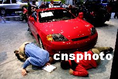 一年一度的美國芝加哥車展正在展覽中心舉行,數(shù)十家世界著名汽車制造商的一千多件展品登臺亮相,圖為本田汽車展臺前,參觀者和推銷員一起對最新問世的轎車上下打量,仔細研究。作者:王瑤