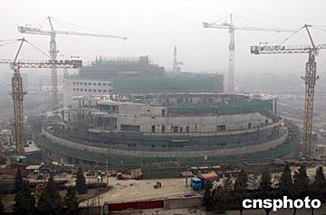 中新網(wǎng)2月23日電 倍受矚目的大型文化設(shè)施—中國(guó)國(guó)家大劇院的戲劇場(chǎng)工程日前實(shí)現(xiàn)結(jié)構(gòu)封頂,整個(gè)工程預(yù)計(jì)明年竣工。