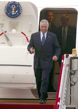 23日下午,美國國務(wù)卿鮑威爾乘坐的飛機抵達北京首都國際機場,開始對中國進行訪問。鮑威爾此行重點將是朝核、伊拉克問題。