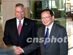 組圖:唐家璇與美國國務(wù)卿鮑威爾舉行會談