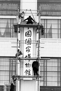 據(jù)國(guó)家文物局專電,2月28日上午10時(shí),將隆重舉行由江澤民主席題寫(xiě)的“中國(guó)國(guó)家博物館”牌匾掛牌儀式。同時(shí),中國(guó)國(guó)家博物館的改擴(kuò)建工程已經(jīng)國(guó)務(wù)院批準(zhǔn)立項(xiàng)。中國(guó)國(guó)家博物館將建設(shè)成為一個(gè)與中國(guó)這樣一個(gè)大國(guó)地位相稱的,與中華民族悠久歷史和燦爛文明相稱的,與蓬勃發(fā)展的社會(huì)主義現(xiàn)代化事業(yè)相稱的,與廣大人民群眾日益增長(zhǎng)的精神文化需求相稱的具有國(guó)際先進(jìn)水平的博物館。
