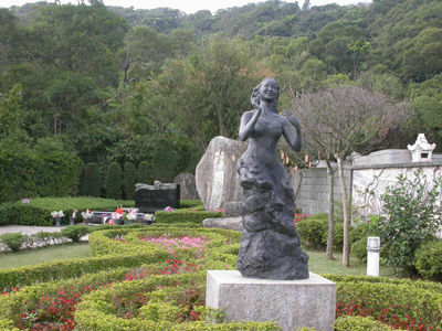 鄧麗君紀念公園位于金寶山墓園的“愛區(qū)”,分為廣場和墓園兩個部分,大約占地150坪左右,廣場比墓園大一些,約為80坪,廣場部分是金寶山墓園的公共用地,真正屬于鄧麗君的,只有70坪的地方。臺灣的所謂一坪,相當于3.3平方米。