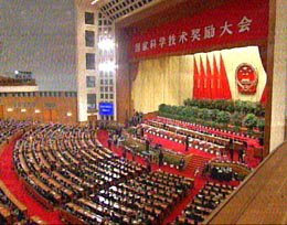 獎勵大會由中共中央總書記胡錦濤主持,國務(wù)院總理朱镕基代表中共中央、國務(wù)院發(fā)表講話,國務(wù)院副總理李嵐清宣讀《國務(wù)院關(guān)于二00二年度國家科學(xué)技術(shù)獎勵的決定》,吳邦國、溫家寶、曾慶紅、李長春等出席大會。