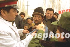 三月初,解放軍醫(yī)療隊(duì)晝夜在新疆地震災(zāi)區(qū)巡回出診,確保災(zāi)民身體健康。作者:宋吉河