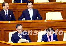 香港政務(wù)司、律政司等列席財(cái)政預(yù)算案.香港政務(wù)司長(zhǎng)曾蔭權(quán)、律政司長(zhǎng)梁愛詩等政府高官,3月5日列席立法會(huì)聽取財(cái)政司司長(zhǎng)梁錦松提交2003至2004年度財(cái)政預(yù)算案。洪少葵 攝