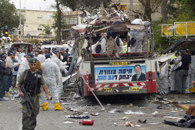 中新網(wǎng)3月6日電 以色列北部海濱城市海法5日下午發(fā)生的公共汽車自殺炸彈爆炸事件,已造成15人喪生,40余人受傷。這是兩個(gè)月來(lái)首次在以色列發(fā)生的自殺炸彈襲擊事件。