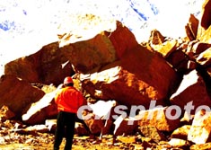 新疆地震后的314國道克州段,六日上午有一處山體滑坡,大批車輛受阻。作者:宋吉河