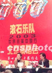 英國世界級(jí)搖滾巨星、40年經(jīng)久不衰的“滾石樂隊(duì)”,將于2003年4月1日和4日在上海、北京舉行大型演唱會(huì)。中國搖滾音樂歌手崔健(右),六日在北京宣布將協(xié)同演出。作者:鄒憲