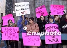 組圖:各國(guó)婦女在聯(lián)合國(guó)大樓外示威反對(duì)開戰(zhàn)