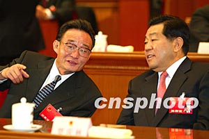 圖:吳邦國(guó)與賈慶林出席十屆人大一次會(huì)議第六次全體會(huì)議