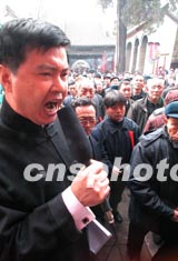 中新社鄭州三月十六日電 (張坤)“怒發(fā)沖冠,憑欄處,瀟瀟雨歇······”十六日上午,在河南湯陰岳廟,海內(nèi)外岳氏宗親后裔齊唱《滿江紅》紀(jì)念南宋抗金名將、中國(guó)歷史上著名民族英雄岳飛誕辰九百周年,并舉行了盛況空前的祭祀活動(dòng)。