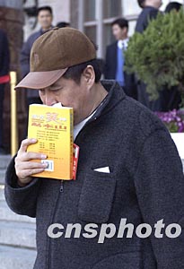 十屆全國人大一次會議第七次全體會議十七日在北京人民大會堂召開,全國人大代表趙本山在退場時以傳記文學(xué)《東方笑神趙本山》掩面而出。作者:廖文靜