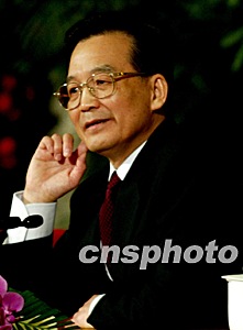 圖:溫家寶傾聽(tīng)記者提問(wèn)