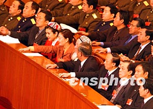 人大代表們?nèi)率巳赵诒本﹨⒓邮畬萌舜笠淮螘h閉幕大會上按表決器,通過有關(guān)報告的決議。作者:賈國榮