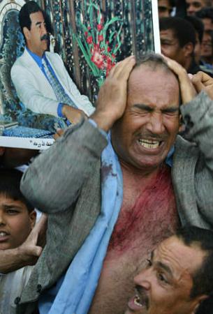 中新網(wǎng)3月19日電 當(dāng)?shù)貢r(shí)間3月18日,巴格達(dá)街頭爆發(fā)了大規(guī)模的抗議美軍入侵伊拉克的集會(huì)。由于薩達(dá)姆拒絕了美國的最后通牒,戰(zhàn)爭一觸即發(fā)。(春風(fēng))