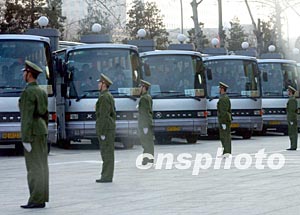 解放軍官兵在北京的京西賓館護送全國人大代表們各奔前程,將中國新一屆政府的改革決策傳遍大江南北。作者:賈國榮