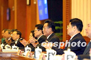 十屆全國人大常委會(huì)一次會(huì)議十九日在北京舉行,全國人大常委會(huì)委員長吳邦國及新當(dāng)選的副委員長們出席。作者:滿會(huì)喬