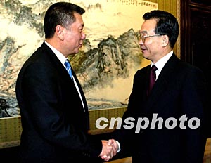 國務(wù)院總理溫家寶十九日在北京中南海會見澳門特別行政區(qū)行政長官何厚鏵。作者:鄭萍萍