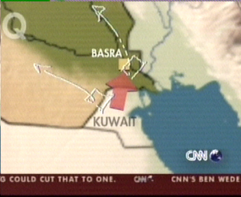 第3師出發(fā)后不久就與伊軍交上了火,據(jù)前衛(wèi)部隊發(fā)回的無線電,他們是與三輛伊軍裝甲運兵車遭遇的,經(jīng)過短短幾分鐘的混戰(zhàn),他們?nèi)珰灹诉@股伊軍。第3步兵師推進的速度異常之快,從夜里到天亮短短數(shù)小時,他們就已經(jīng)深入伊境內(nèi)150公里,平均以每小時30英里的速度推進。第5步兵師一名指揮官向記者透露說,他們師和兄弟部隊的任務就是在最短時間內(nèi)奪取兩河流域的戰(zhàn)略要地,隨后對巴格達實施合圍。