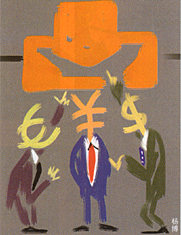 回到北京一個多月來,我坐在編輯部里,?吹疥P(guān)于人民幣的報道,神經(jīng)不免就被那幅廣告畫所牽動,卻始終無從考證其正確的解釋和來源。在這些新聞中,有巴基斯坦中央銀行已同意在對外貿(mào)易中使用人民幣結(jié)算;臺灣“央行”準備放寬人民幣進入島內(nèi)……