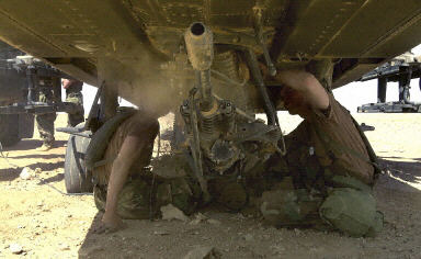 美101空降旅士兵清理阿帕奇直升機(jī)的30毫米機(jī)炮