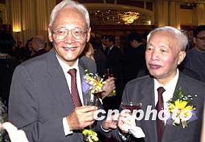 何厚鏵、王漢斌、馬萬祺、萬國權(quán)、魯平、郭東坡、白志健、萬永祥等在酒會上祝酒。作者:李剛