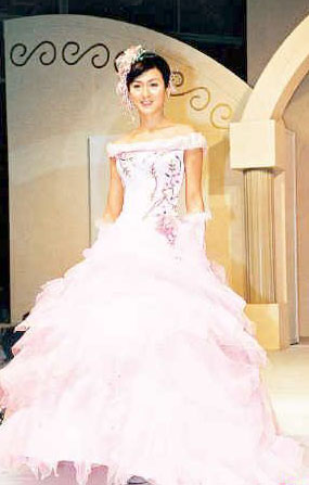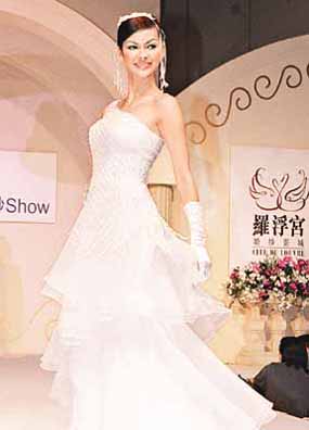 中新網(wǎng)3月31日電 “香港婚紗、婚宴暨蜜月旅游博覽2003”昨日舉行,周汶锜(Kathy)、姚嘉妮、歐陽妙芝及Rosemary等,為不同單位展示艷麗的新款婚紗及晚裝。Kathy在活動(dòng)中更澄清與男友杜德偉的感情沒有出現(xiàn)問題,并非在人前扮恩愛。