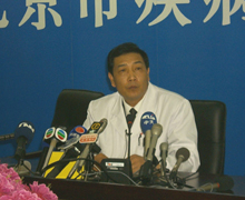 隨后,記者分兩組分別采訪北京市疾病預(yù)防控制中心和收治“非典”患者的地壇醫(yī)院。預(yù)防控制中心負(fù)責(zé)人介紹了該中心的職能及北京市防治“非典”熱線情況。他說,目前開通的中英文“非典”咨詢熱線,每天接收3000人次咨詢。中心有關(guān)人員還就記者提出的“非典”病人數(shù)、分類、“非典”病源研究情況、中心年預(yù)算和“五一”黃金周出游是否安全等問題回答了記者提問。在地壇醫(yī)院,記者走訪了病毒研究中心,還換上特制隔離服進(jìn)入“非典”病房。醫(yī)院副院長兼發(fā)言人項曉培向記者介紹了該院收治的“非典”病人數(shù)及醫(yī)護(hù)情況。