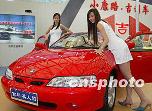 中國(guó)吉利集團(tuán)生產(chǎn)的雙門跑車二十一日亮相上海第十屆國(guó)際汽車展覽會(huì),十分搶眼。作者:趙振清