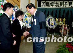 全國政協(xié)主席賈慶林二十一日在北京八寶山,悼念逝世的前臺盟中央主席蔡子民先生,并向蔡先生的親屬表示慰問。作者:鄭萍萍