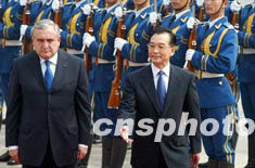 中新社北京四月二十五日電(記者姜知然)中國國務院總理溫家寶二十五日在人民大會堂與法國總理拉法蘭舉行會談時表示,拉法蘭總理此次訪華意義重大,對中法關(guān)系的深入發(fā)展將起到積極促進作用。