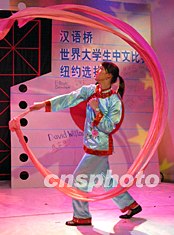 由紐約中國留學(xué)服務(wù)中心、美國僑報(bào)和美國中文電視聯(lián)合舉辦的第二屆“中國橋”世界大學(xué)生中文比賽,四月二十六日在紐約舉行。來自紐約六所大學(xué)的學(xué)生參加了中文演講、中華文化問答和才藝三個(gè)項(xiàng)目的比賽,來自賓州大學(xué)的學(xué)生表演中國舞蹈《蝴蝶》。作者:游江