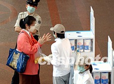 香港一些購物商場為預防“非典型病毒”傳播,紛紛設立衛(wèi)生站方便市民清潔,并宣傳防止SARS傳播方法。洪少葵 攝
