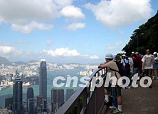 受到非典型肺炎影響下,香港市民不敢去人流擠迫的地方,山頂就成為呼吸新鮮空氣的好地方,成為近期郊游熱點。譚達明 攝
