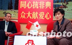 廣州本田汽車有限公司總經(jīng)理門脅轟二代表公司3800多名員工把100萬元人民幣的支票交給了廣州市紅十字會(huì),這筆捐款將用于防治非典型肺炎研究的專項(xiàng)基金。