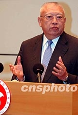 香港行政長(zhǎng)官董建華4月28日在記者會(huì)上表示,雖然SARS感染個(gè)案有下降趨勢(shì),但疫情仍然嚴(yán)峻,仍會(huì)有反覆,故萬萬不可掉以輕心或松懈。洪少葵 攝