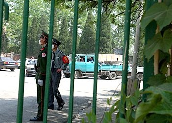 圖:軍警守衛(wèi)醫(yī)院重地 物資源源運到